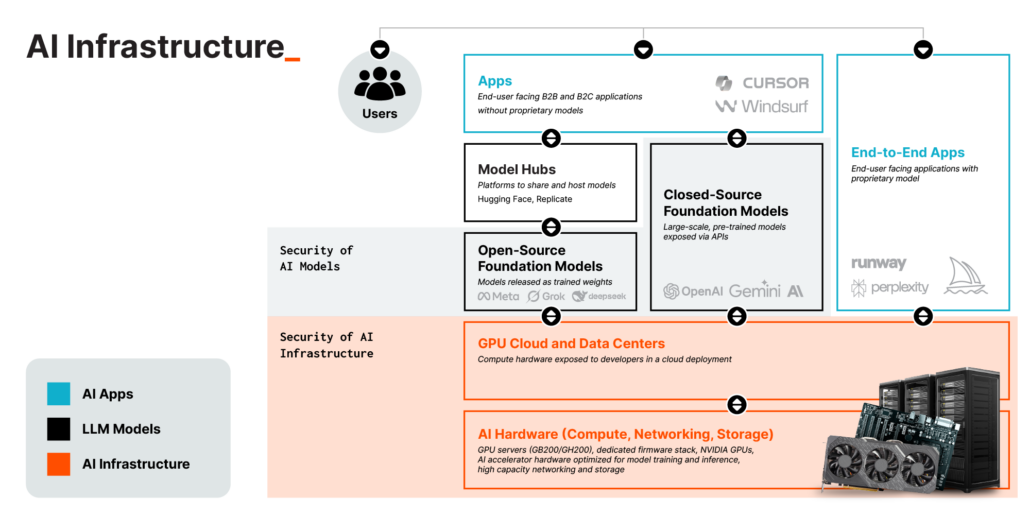 From AI Servers, to GPUs, to network infrastructure and other foundational tech, increased security and continuous protection is needed. While the OWASP Top 10 Risks for LLMs and other research have heavily focused on AI software and model risks, the security of the hardware, components, and supply chain have been largely ignored. NIST SP 800-223 identifies numerous cyber risks facing High Performance Compute (HPC) which includes AI data centers. Risks include: