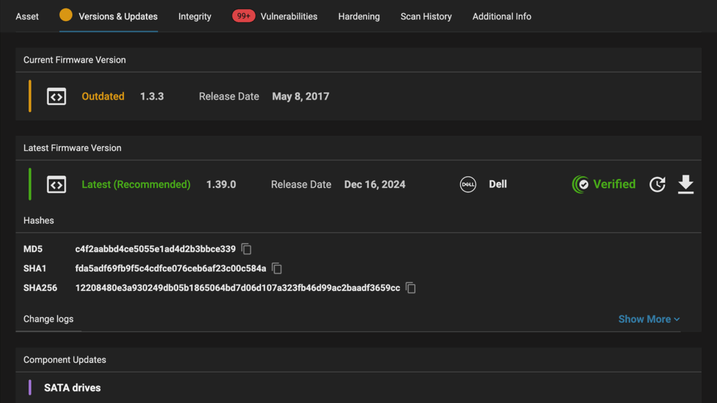 Confirm endpoints haven’t been compromised at the firmware level. Compare actual firmware against vendor-published baselines to detect malicious modifications, rootkits, and persistence mechanisms. Identify misconfigurations that leave devices vulnerable.